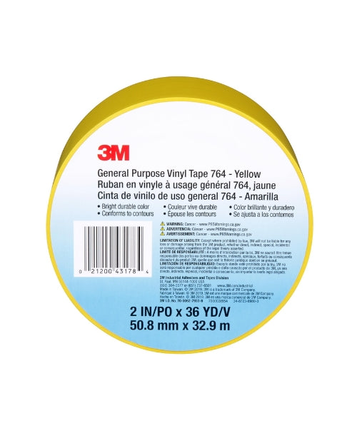 The 3M™ General Purpose Vinyl Tape 764 is a durable and versatile marking tape designed for color coding, safety marking, and general-purpose applications in industrial and commercial environments.
