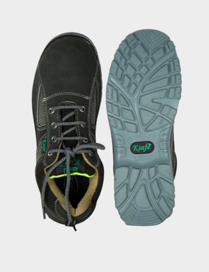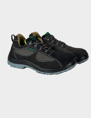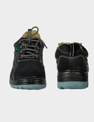 Suede leather safety shoes with steel toe, slip-resistant sole, and cushioned comfort for heavy-duty industrial use.
