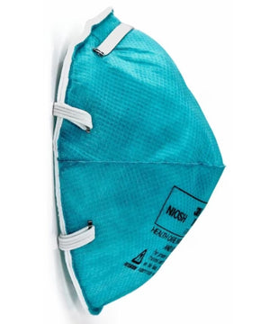 NIOSH-approved N95 healthcare respirator and surgical mask, providing fluid resistance and particulate protection.