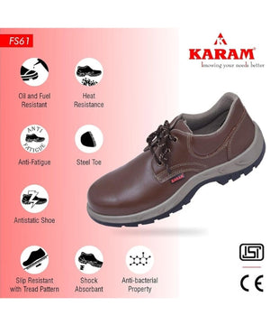 The KARAM FS61BR Worker's Leather Safety Shoes provide unmatched protection and comfort, making them ideal for industrial and heavy-duty work environments. Designed for durability and reliability, these shoes are a trusted choice for professionals.