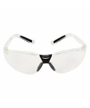 Sporty design safety spectacles with clear lenses and soft nose bridge. Certified to ANSI Z87.1.