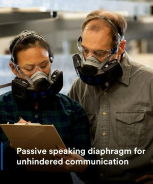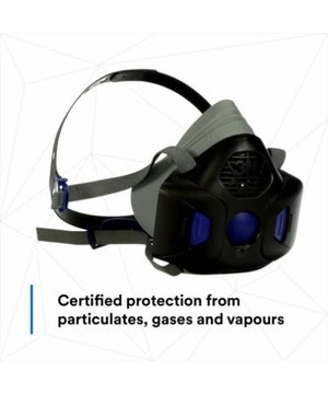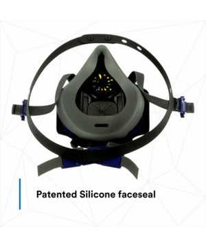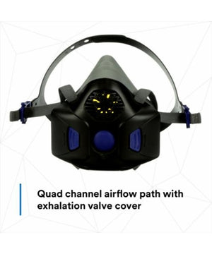 Advanced half facepiece respirator with Secure Click dual-cartridge connection for safety and ease. NIOSH approved for use with 3M Secure Click Style Cartridges.