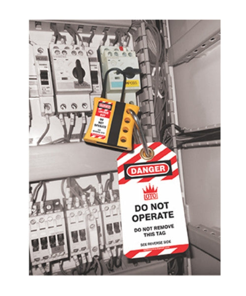 The Electric Slider Hasp – 6mm Shackle is a compact and durable lockout device designed to securely isolate electrical switches, circuit breakers, and control panels during maintenance, ensuring complete worker safety.
