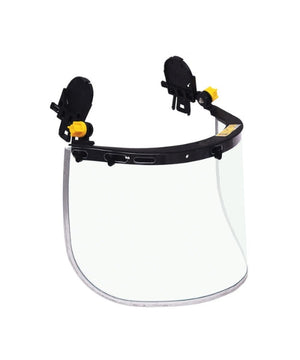 Face shield attachable to Karam helmets, providing additional facial protection against flying debris and light impacts.