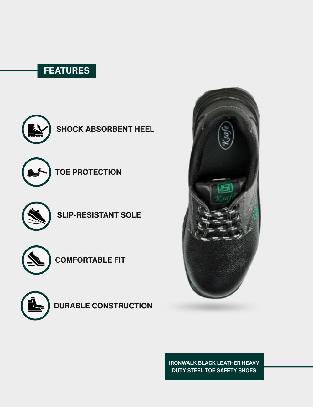 IronWalk Black Leather Heavy Duty Steel Toe Safety Shoes