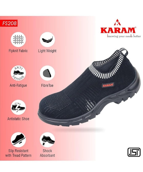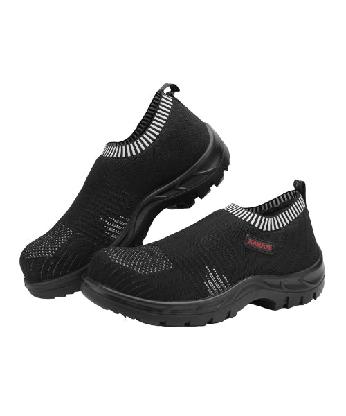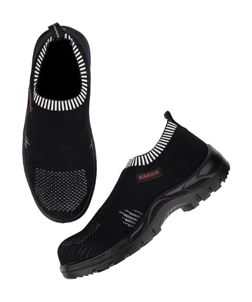 Black Sporty Slip-On Safety Shoes with Fiber Toe|Karam FS208 (FWSAMN)