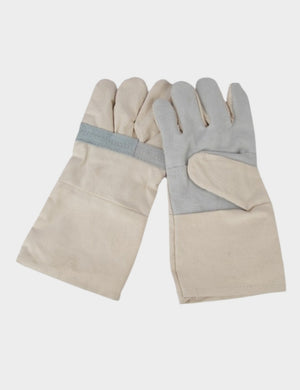 Durable leather-cotton combination gloves offering abrasion resistance and comfort for multipurpose industrial tasks.