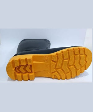 Half-length PVC gumboots with distinctive yellow sole, lightweight comfort, and anti-slip protection for industrial work.
