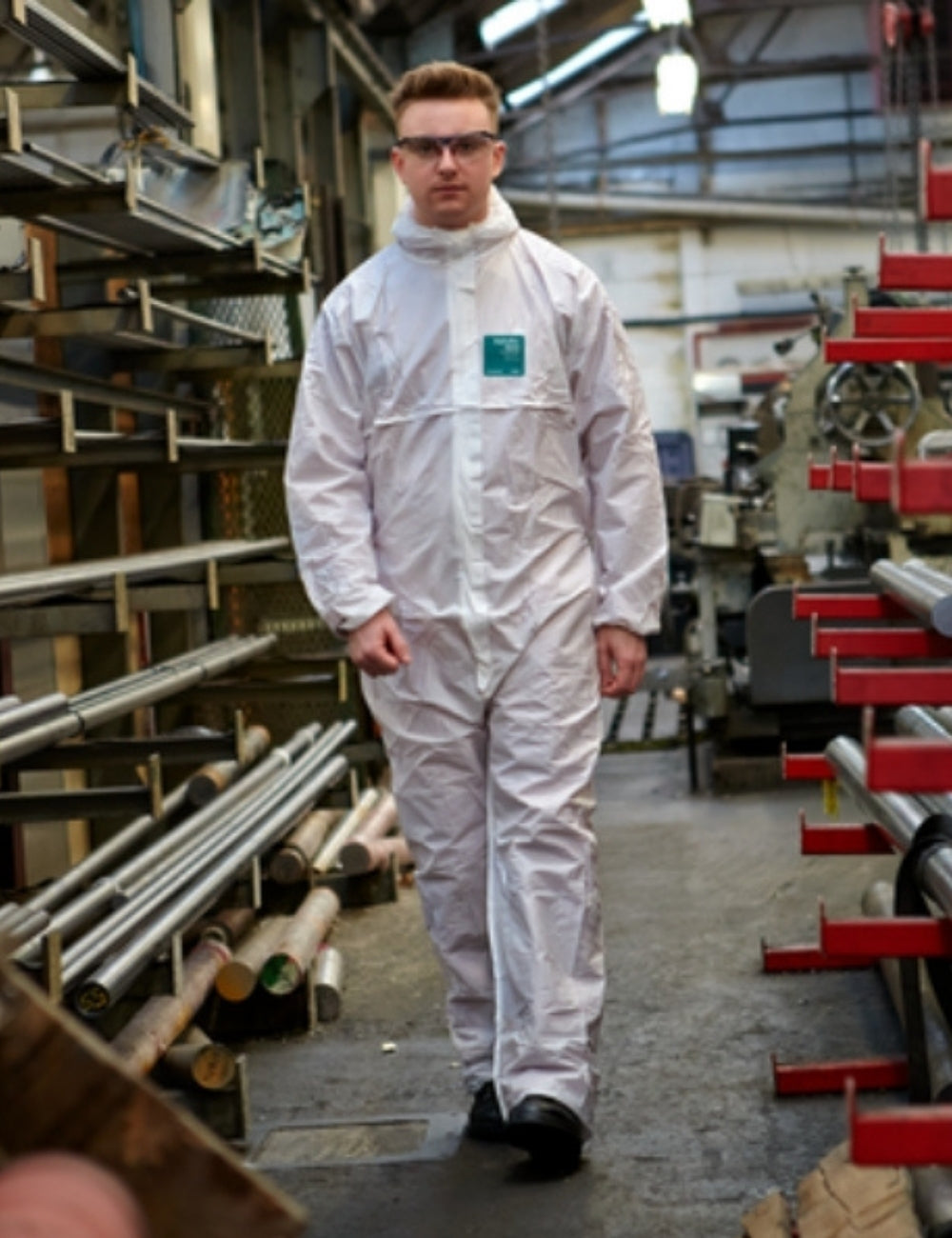 The Ansell AlphaTecÆ 1800 Coverall provides reliable protection in industrial environments where workers face exposure to low-hazard liquid spray and fine particulates.