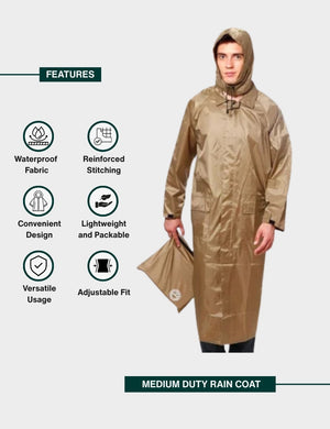 Medium-duty raincoat made from durable PVC-coated fabric, providing comfort and waterproof protection in wet weather.