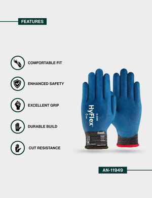 The Ansell HyFlex® 11-949 industrial gloves provide superior cut resistance and oil repellence for a variety of medium-duty tasks.