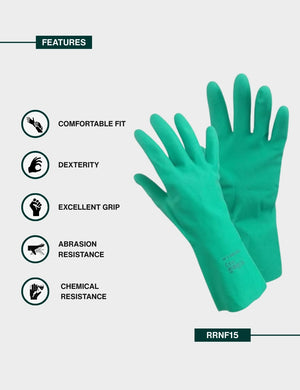 The Nitrile Gloves Flocklined Super Nitrile RNF15 MILS are crafted for superior protection and user comfort in demanding industrial and cleaning environments. These gloves feature a soft flocklined interior for enhanced comfort and a durable nitrile exterior that provides robust chemical and abrasion resistance.