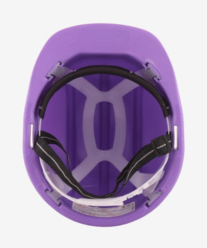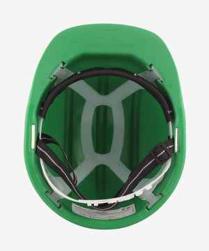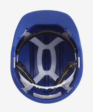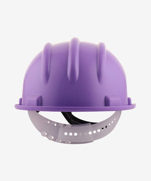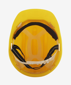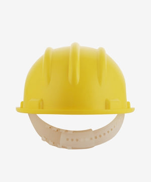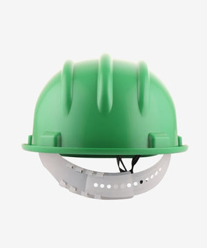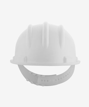 Unvented HDPE safety helmet with manual adjustment, providing reliable head protection for industrial and construction workers.