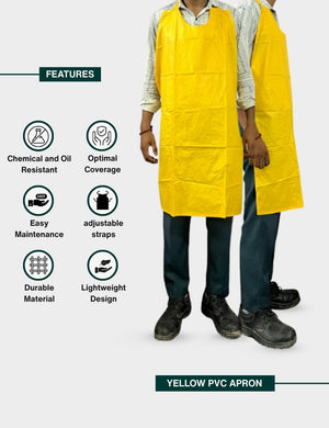 Durable yellow PVC apron offering waterproof, chemical-resistant protection for industrial and laboratory applications.